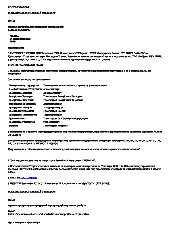 ГОСТ 27384-2002: Вода. Нормы погрешности измерений показателей состава и свойств