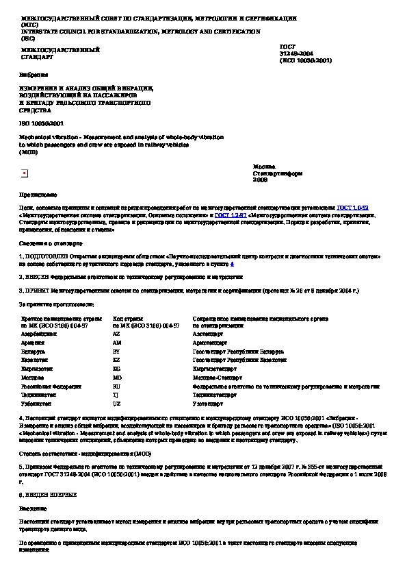 Наша цель состоит в том, чтобы предоставить вам быстрый доступ к содержанию документа Вибрация. Измерение и анализ общей вибрации, воздействующей на пассажиров и бригаду рельсового транспортного средства.