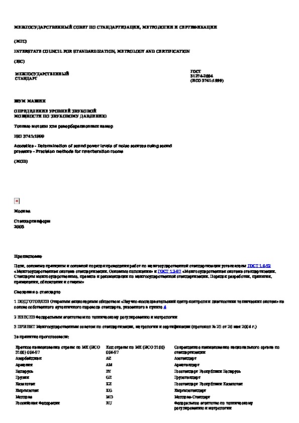 Наша цель состоит в том, чтобы предоставить вам быстрый доступ к содержанию документа Шум машин. Определение уровней звуковой мощности по звуковому давлению. Точные методы для реверберационных камер.