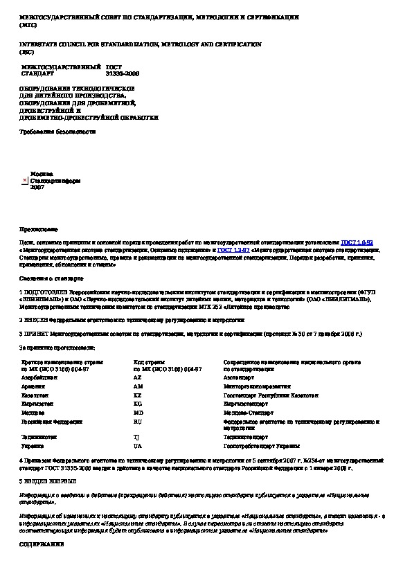 ГОСТ 31335-2006: Оборудование технологическое для литейного производства. Оборудование для дробеметной, дробеструйной и дробеметно-дробеструйно
