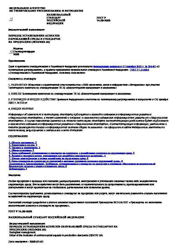 Наша цель состоит в том, чтобы предоставить вам быстрый доступ к содержанию документа Экологический менеджмент. Порядок установления аспектов окружающей среды в стандартах на продукцию (ИСО/МЭК 64).