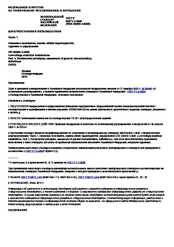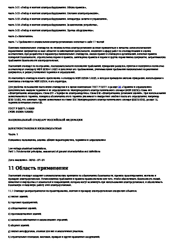 ГОСТ Р 50571.1-2009: Электроустановки низковольтные. Часть 1. Основные положения, оценка общих характеристик, термины и определения