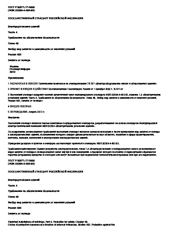 ГОСТ Р 50571.17-2000: Электроустановки зданий. Часть 4. Требования по обеспечению безопасности. Глава 48. Выбор мер защиты в зависимости от внешних услови