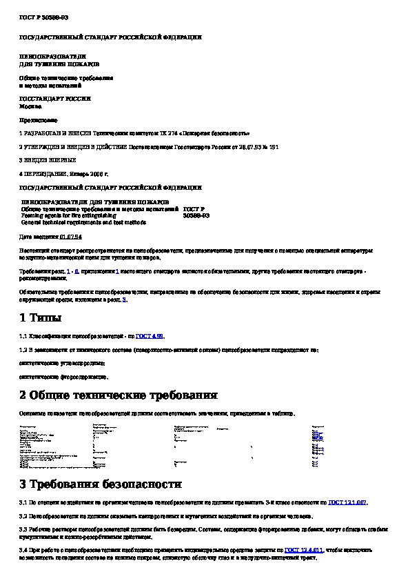 ГОСТ Р 50588-93: Пенообразователи для тушения пожаров. Общие технические требования и методы испытаний