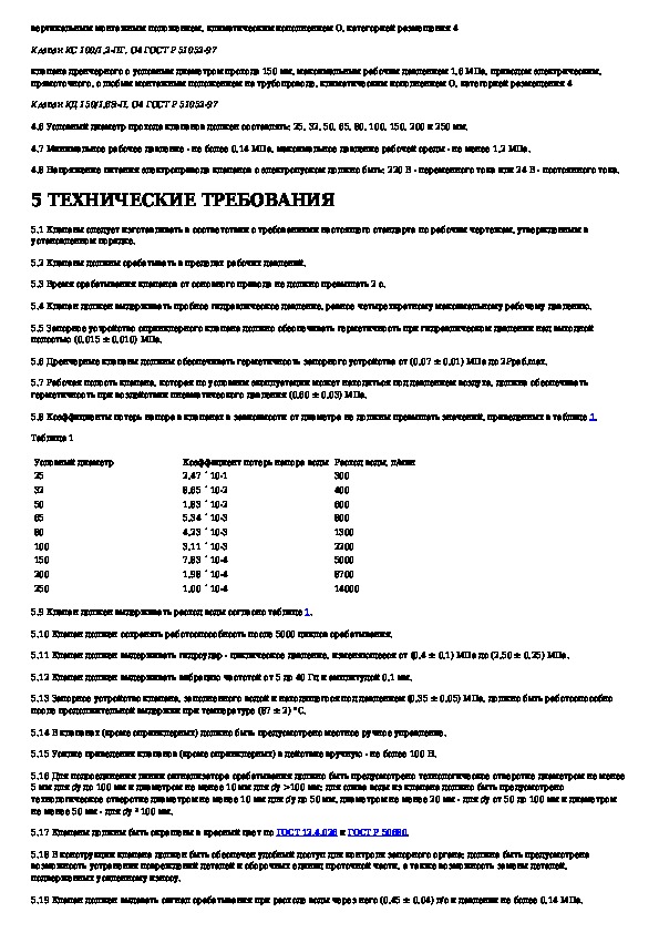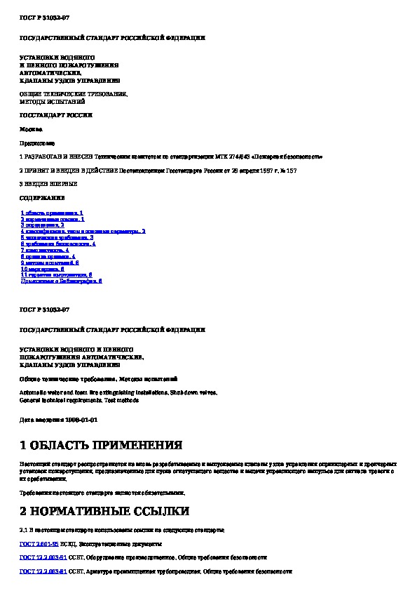 ГОСТ Р 51052-97: Установки водяного и пенного пожаротушения автоматические. Клапаны узлов управления. Общие технические требования. Методы испыта