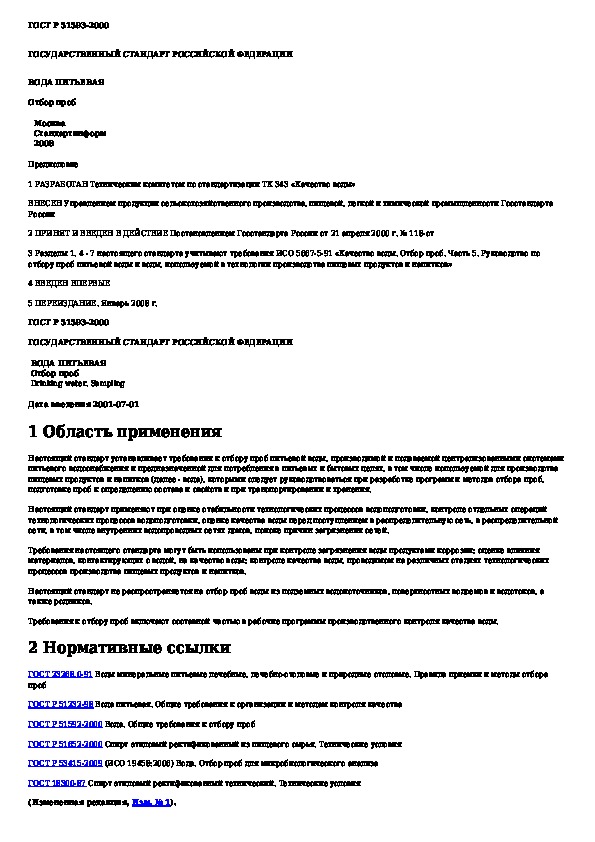 ГОСТ Р 51593-2000: Вода питьевая. Отбор проб