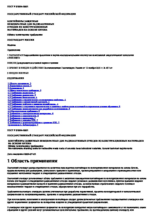 • Просмотр в полноэкранном режиме - легко просмотреть документ Контейнеры защитные невозвратные для радиоактивных отходов из конструкционных материалов на основе бетона. Общие технические тр (без загрузки его на свой компьютер).