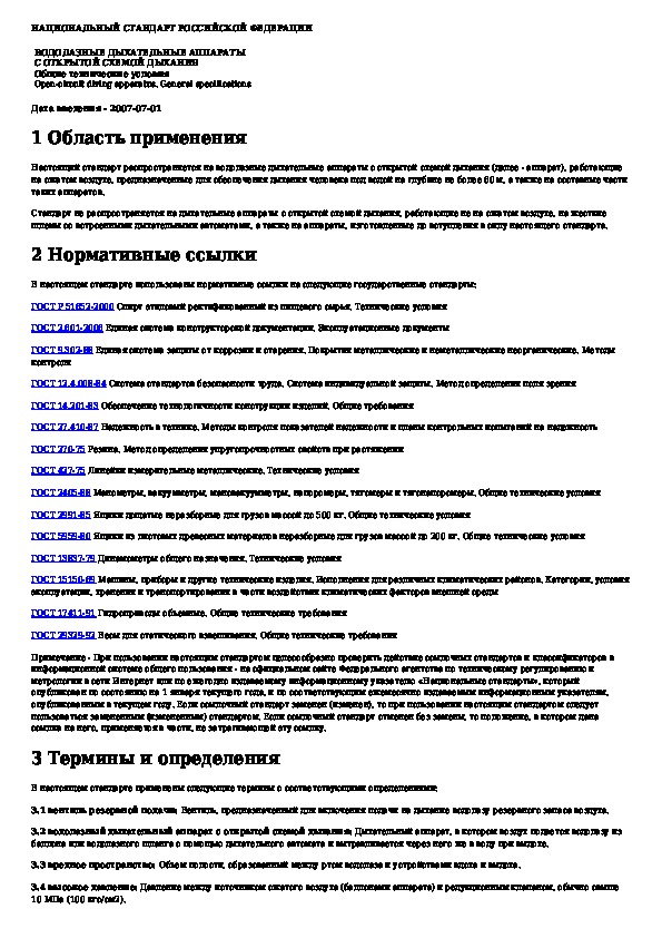ГОСТ Р 52639-2006: Водолазные дыхательные аппараты с открытой схемой дыхания. Общие технические условия