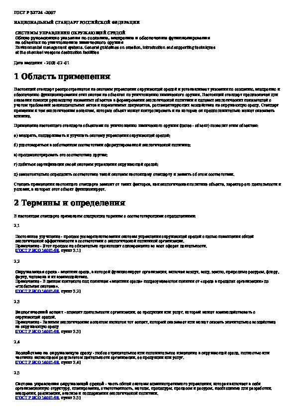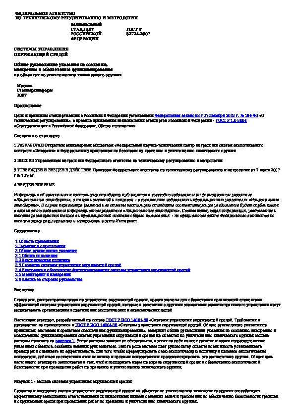 ГОСТ Р 52724-2007: Системы управления окружающей средой. Общие руководящие указания по созданию, внедрению и обеспечению функционирования на объект