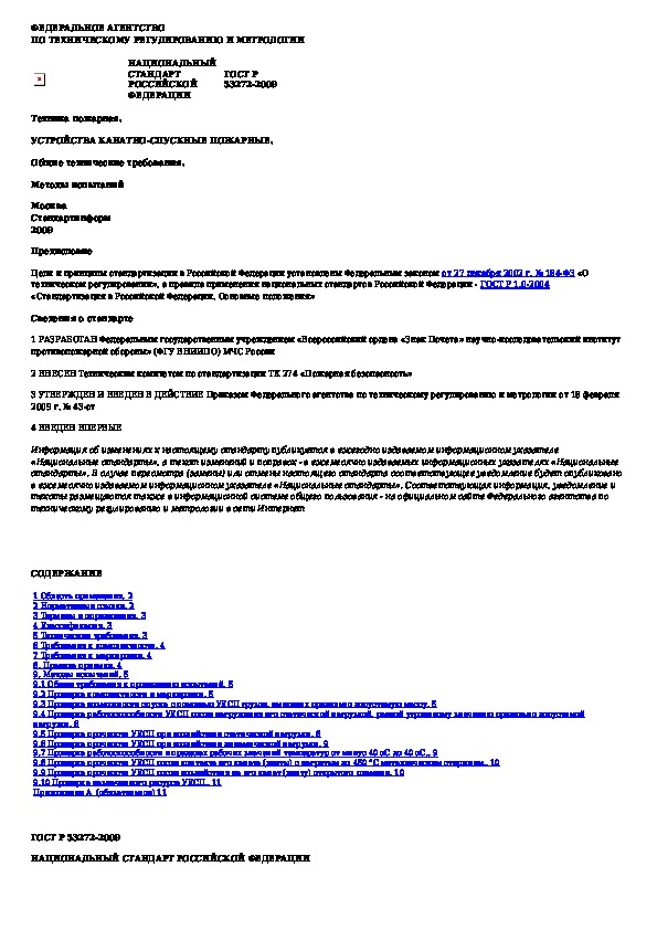 ГОСТ Р 53272-2009: Техника пожарная. Устройства канатно-спускные пожарные. Общие технические требования. Методы испытаний