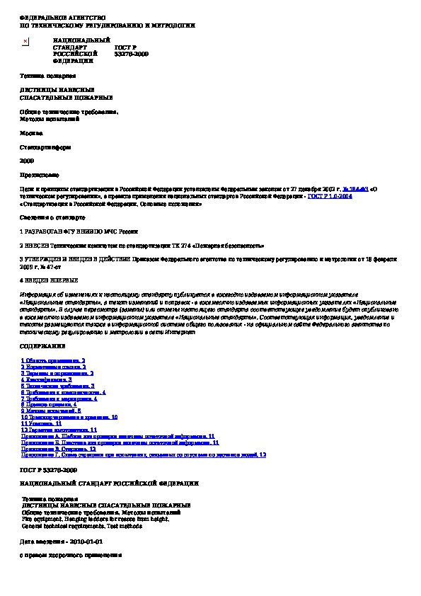 ГОСТ Р 53276-2009: Техника пожарная. Лестницы навесные спасательные пожарные. Общие технические требования. Методы испытаний