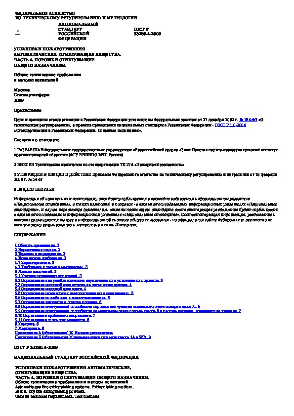 Наша цель состоит в том, чтобы предоставить вам быстрый доступ к содержанию документа Установки пожаротушения автоматические. Огнетушащие вещества. Часть 4. Порошки огнетушащие общего назначения. Общие технические т.