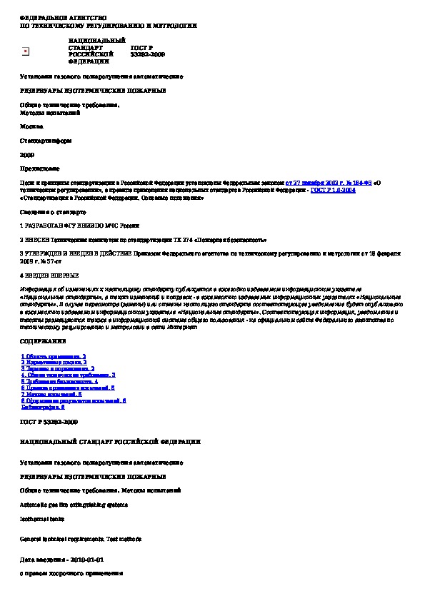 Наша цель состоит в том, чтобы предоставить вам быстрый доступ к содержанию документа Установки газового пожаротушения автоматические. Резервуары изотермические пожарные. Общие технические требования. Методы испыт.