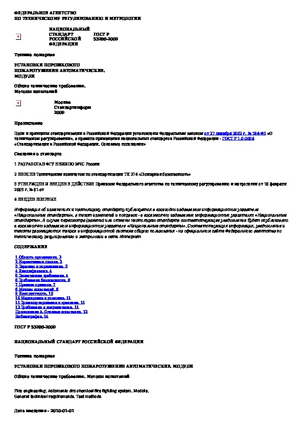 ГОСТ Р 53286-2009: Техника пожарная. Установки порошкового пожаротушения автоматические. Модули. Общие технические требования. Методы испытаний