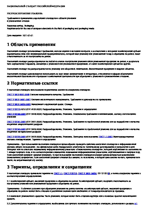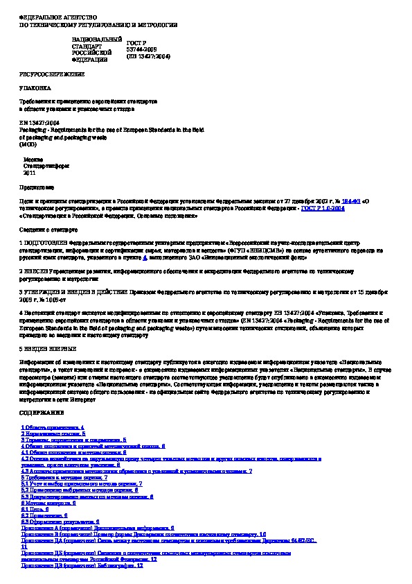 Наша цель состоит в том, чтобы предоставить вам быстрый доступ к содержанию документа Ресурсосбережение. Упаковка. Требования к применению европейских стандартов в области упаковки и упаковочных отходов.