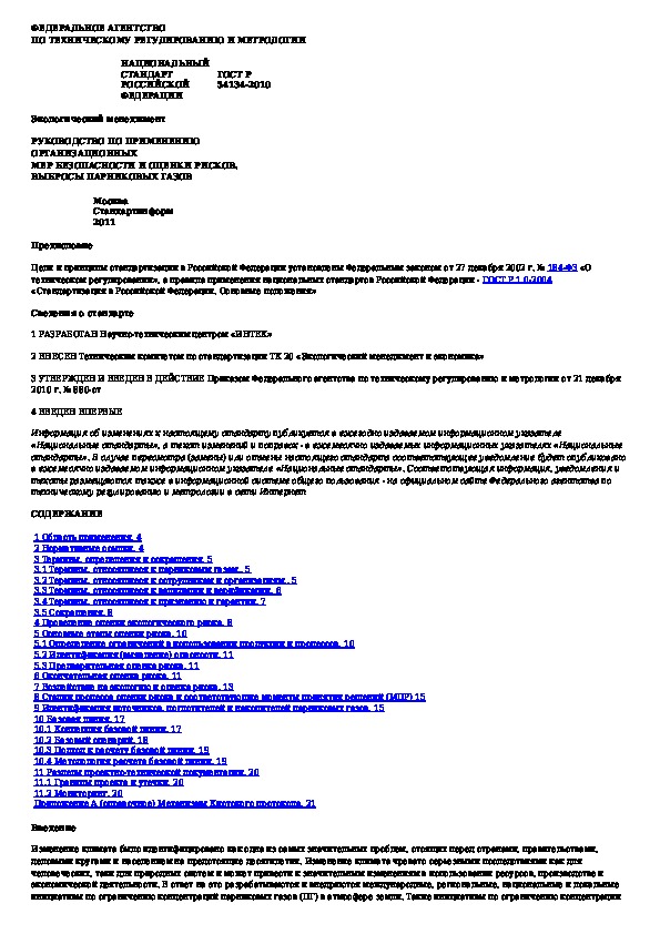 Наша цель состоит в том, чтобы предоставить вам быстрый доступ к содержанию документа Экологический менеджмент. Руководство по применению организационных мер безопасности и оценки рисков. Выбросы парниковых газов.