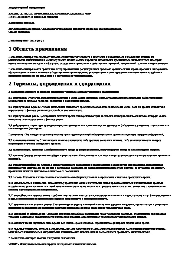 Наша цель состоит в том, чтобы предоставить вам быстрый доступ к содержанию документа Экологический менеджмент. Руководство по применению организационных мер безопасности и оценки рисков. Изменение климата.