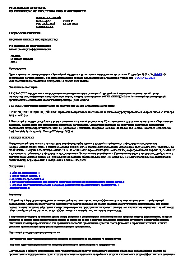 Наша цель состоит в том, чтобы предоставить вам быстрый доступ к содержанию документа Ресурсосбережение. Промышленное производство. Руководство по идентификации аспектов энергоэффективности.