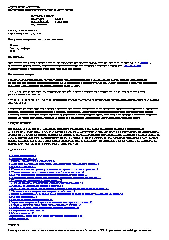 ГОСТ Р 54202-2010: Ресурсосбережение. Газообразные топлива. Наилучшие доступные технологии сжигания