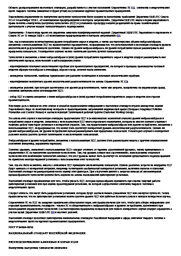 Ресурсосбережение. Каменные и бурые угли. Наилучшие доступные технологии сжигания