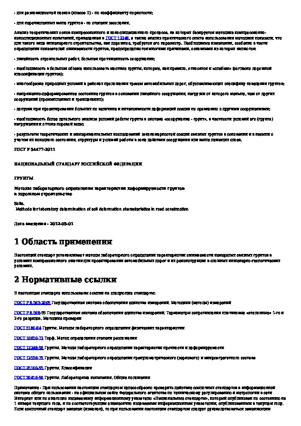 ГОСТ Р 54477-2011: Грунты. Методы лабораторного определения характеристик деформируемости грунтов в дорожном строительстве