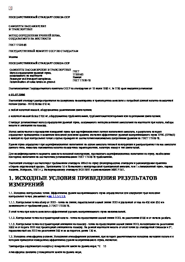 ГОСТ 17229-85: Самолеты пассажирские и транспортные. Метод определения уровней шума, создаваемого на местности