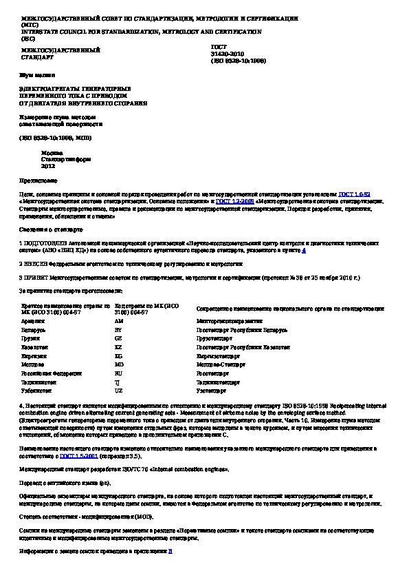 ГОСТ 31420-2010: Шум машин. Электроагрегаты генераторные переменного тока с приводом от двигателя внутреннего сгорания. Измерение шума методом ох