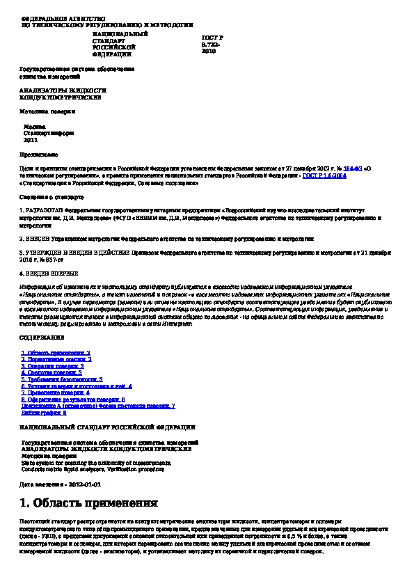 Наша цель состоит в том, чтобы предоставить вам быстрый доступ к содержанию документа Государственная система обеспечения единства измерений. Анализаторы жидкости кондуктометрические. Методика поверки.