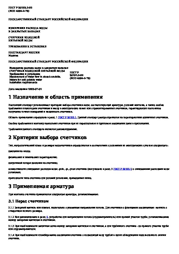 Наша цель состоит в том, чтобы предоставить вам быстрый доступ к содержанию документа Измерение расхода воды в закрытых каналах. Счетчики холодной питьевой воды. Требования к установке.
