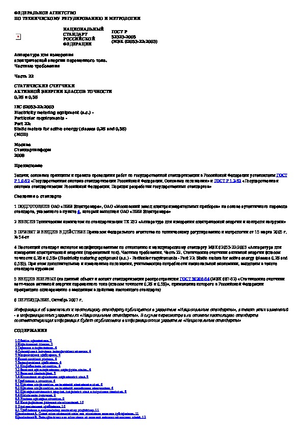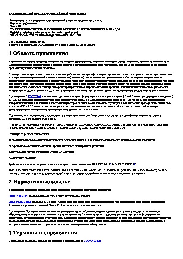 Наша цель состоит в том, чтобы предоставить вам быстрый доступ к содержанию документа Аппаратура для измерения электрической энергии переменного тока. Частные требования. Часть 22. Статические счетчики активной энер.