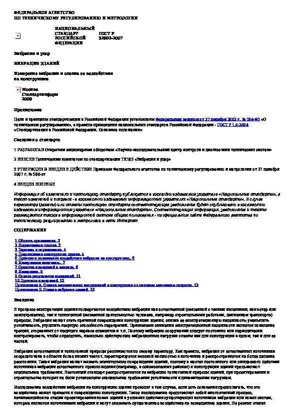 ГОСТ Р 52892-2007: Вибрация и удар. Вибрация зданий. Измерение вибрации и оценка ее воздействия на конструкцию