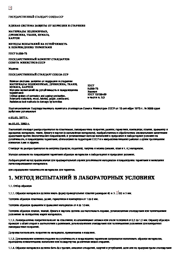 ГОСТ 9.058-75: Единая система защиты от коррозии и старения. Материалы полимерные, древесина, ткани, бумаги, картон. Методы испытаний на устойчиво