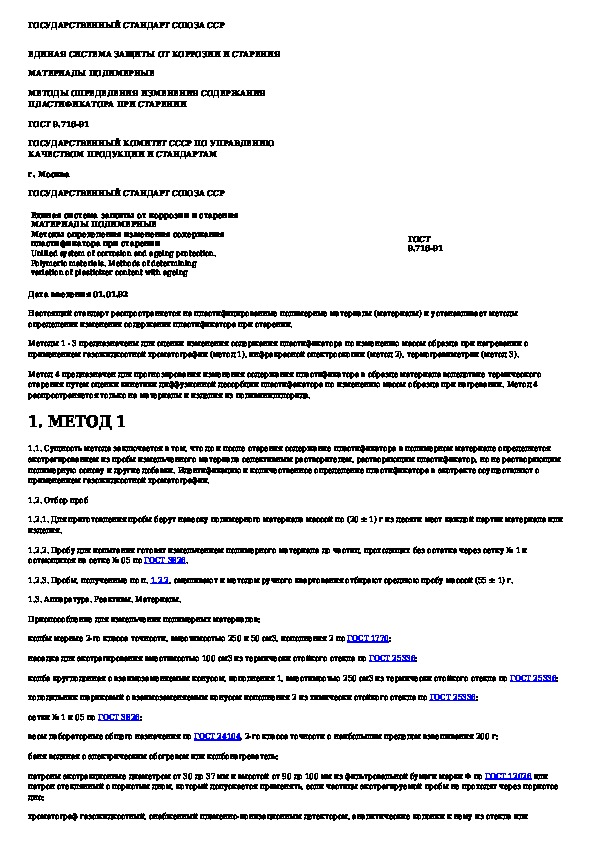 ГОСТ 9.716-91: Единая система защиты от коррозии и старения. Материалы полимерные. Методы определения изменения содержания пластификатора при с