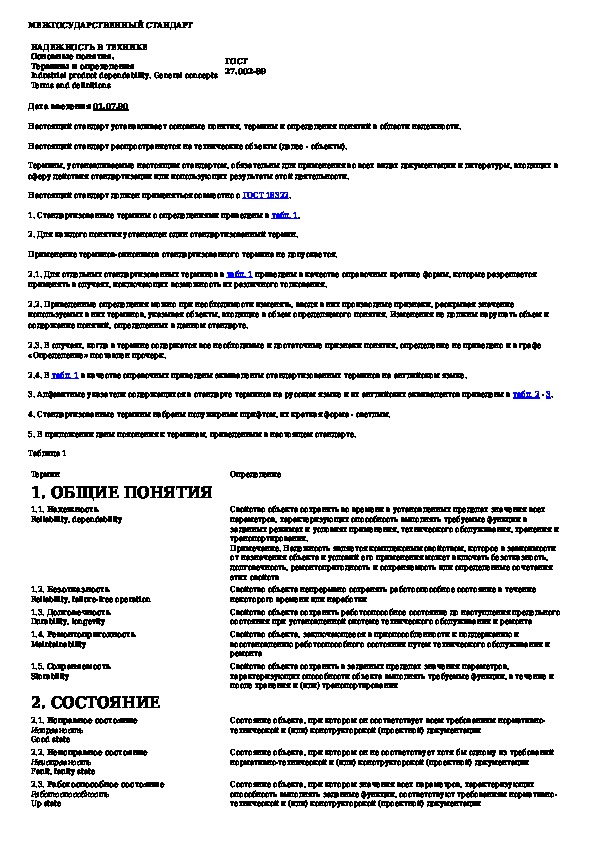 ГОСТ 27.002-89: Надежность в технике. Основные понятия. Термины и определения
