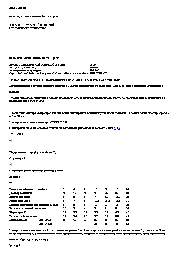 Наша цель состоит в том, чтобы предоставить вам быстрый доступ к содержанию документа Болты с полукруглой головкой и усом класса точности С. Конструкция и размеры.
