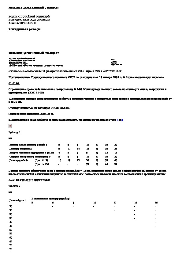 Наша цель состоит в том, чтобы предоставить вам быстрый доступ к содержанию документа Болты с потайной головкой и квадратным подголовком класса точности С. Конструкция и размеры.