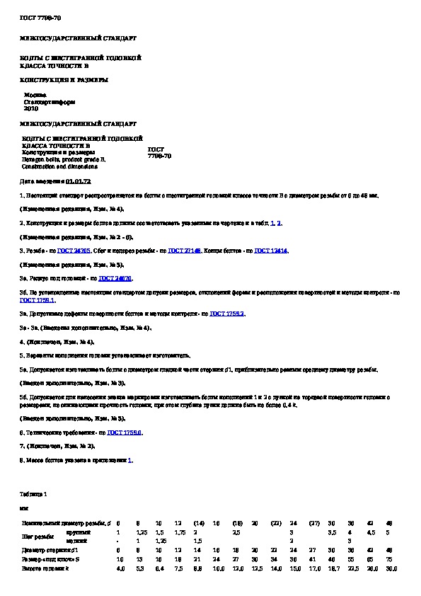 Наша цель состоит в том, чтобы предоставить вам быстрый доступ к содержанию документа Болты с шестигранной головкой класса точности В. Конструкция и размеры.