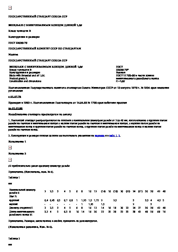 Наша цель состоит в том, чтобы предоставить вам быстрый доступ к содержанию документа Шпильки с ввинчиваемым концом длиной 1,6d. Класс точности В. Конструкция и размеры.