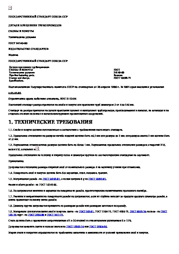 Наша цель состоит в том, чтобы предоставить вам быстрый доступ к содержанию документа Детали крепления трубопроводов. Скобы и хомуты. Технические условия.