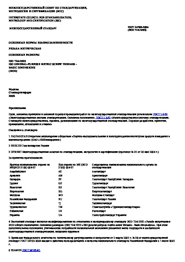 Наша цель состоит в том, чтобы предоставить вам быстрый доступ к содержанию документа Основные нормы взаимозаменяемости. Резьба метрическая. Основные размеры.