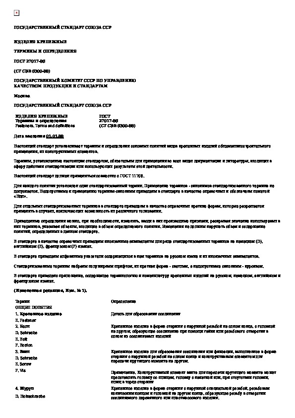 Наша цель состоит в том, чтобы предоставить вам быстрый доступ к содержанию документа Изделия крепежные. Термины и определения.