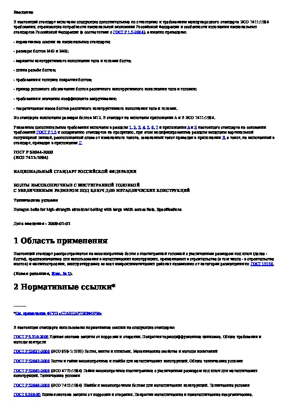 ГОСТ Р 52644-2006: Болты высокопрочные с шестигранной головкой с увеличенным размером под ключ для металлических конструкций. Технические условия