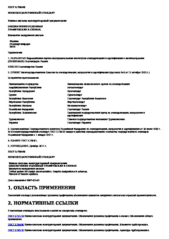 ГОСТ 2.796-95: Единая система конструкторской документации. Обозначения условные графические в схемах. Элементы вакуумных систем