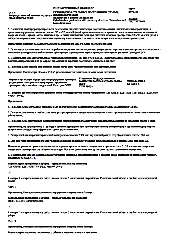 ГОСТ 5172-63: Газгольдеры стальные постоянного объема, цилиндрические. Параметры и основные размеры