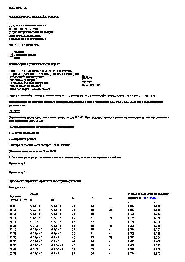 Наша цель состоит в том, чтобы предоставить вам быстрый доступ к содержанию документа Соединительные части из ковкого чугуна с цилиндрической резьбой для трубопроводов. Угольники переходные. Основные размеры.