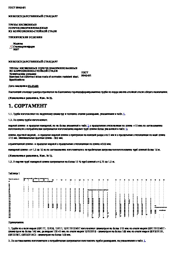 ГОСТ 9940-81: Трубы бесшовные горячедеформированные из коррозионно-стойкой стали. Технические условия