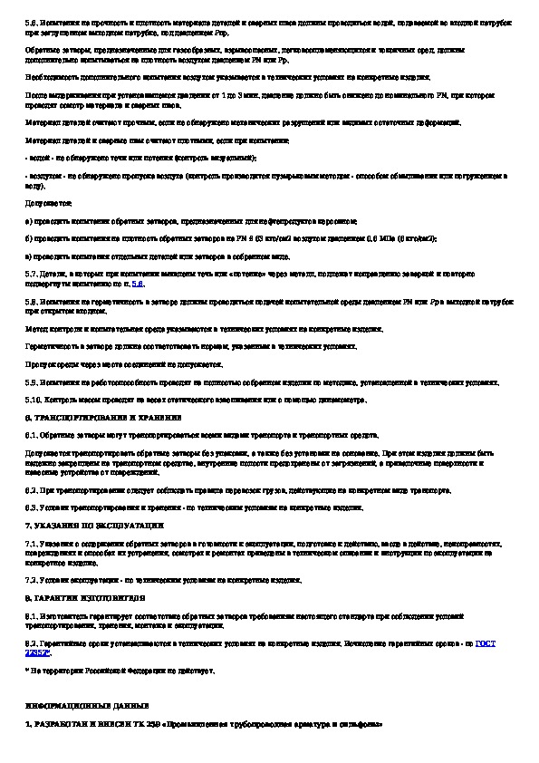 • Загрузка на компьютер - Вы можете также скачать Затворы обратные на номинальное давление PN =< 25 МПа (250 кгс/см кв). Общие технические условия на свой компьютер и сохранить его в файлах.