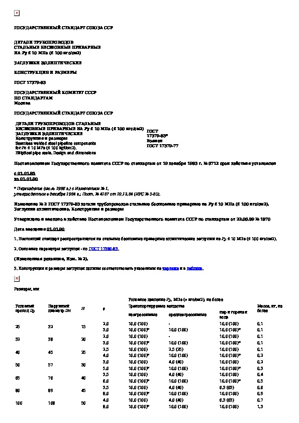 Наша цель состоит в том, чтобы предоставить вам быстрый доступ к содержанию документа Детали трубопроводов стальные бесшовные приварные на Ру < 10 МПа (< 100 кгс/см2). Заглушки эллиптические. Конструкция и размеры.