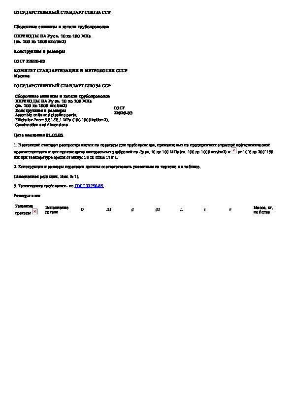 Наша цель состоит в том, чтобы предоставить вам быстрый доступ к содержанию документа Сборочные единицы и детали трубопроводов. Переходы на Ру св. 10 до 100 МПа (св. 100 до 1000 кгс/см кв.). Конструкция и размеры.