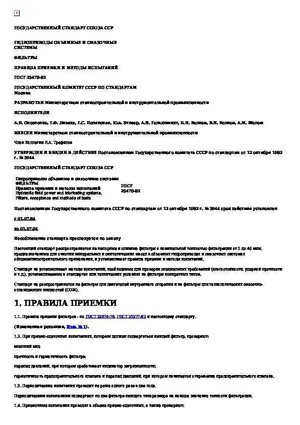 Наша цель состоит в том, чтобы предоставить вам быстрый доступ к содержанию документа Гидроприводы объемные и смазочные системы. Фильтры. Правила приемки и методы испытаний.